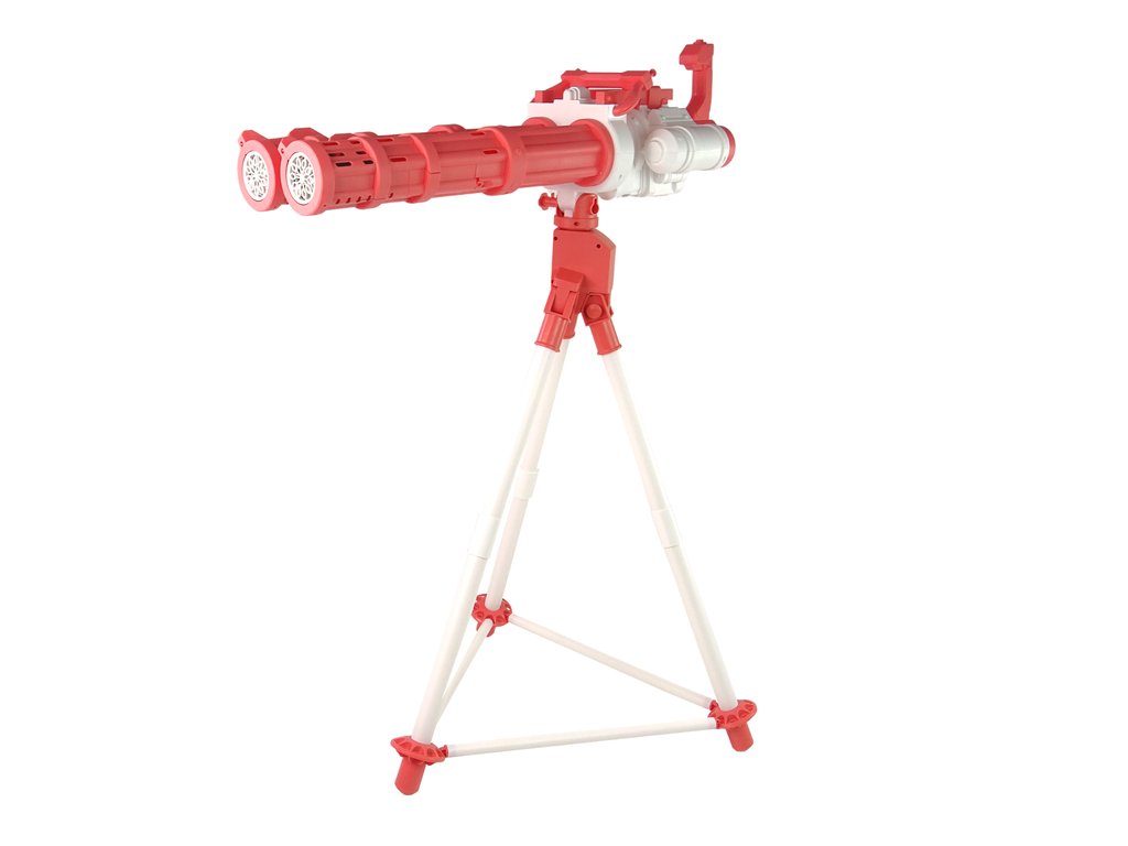 Stativ je nastavitelný, takže pistoli lze pohodlně přizpůsobit výšce každého dítěte. Díky speciální rukojeti drží pistole jistě v dětských rukou, zatímco horní páka umožňuje vytvářet efektní bublinové scenérie. 🎉