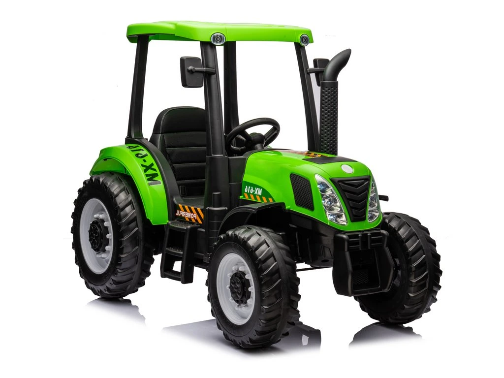 Traktor je vybaven pohodlným sedadlem z eko kůže, bezpečnostními pásy a otevíracími dveřmi pro snadné nastupování. Rodiče ocení dálkové ovládání 2.4 GHz, které umožňuje jízdu plně kontrolovat. O zábavu se postarají světelné efekty i audio panel s USB a MP3.