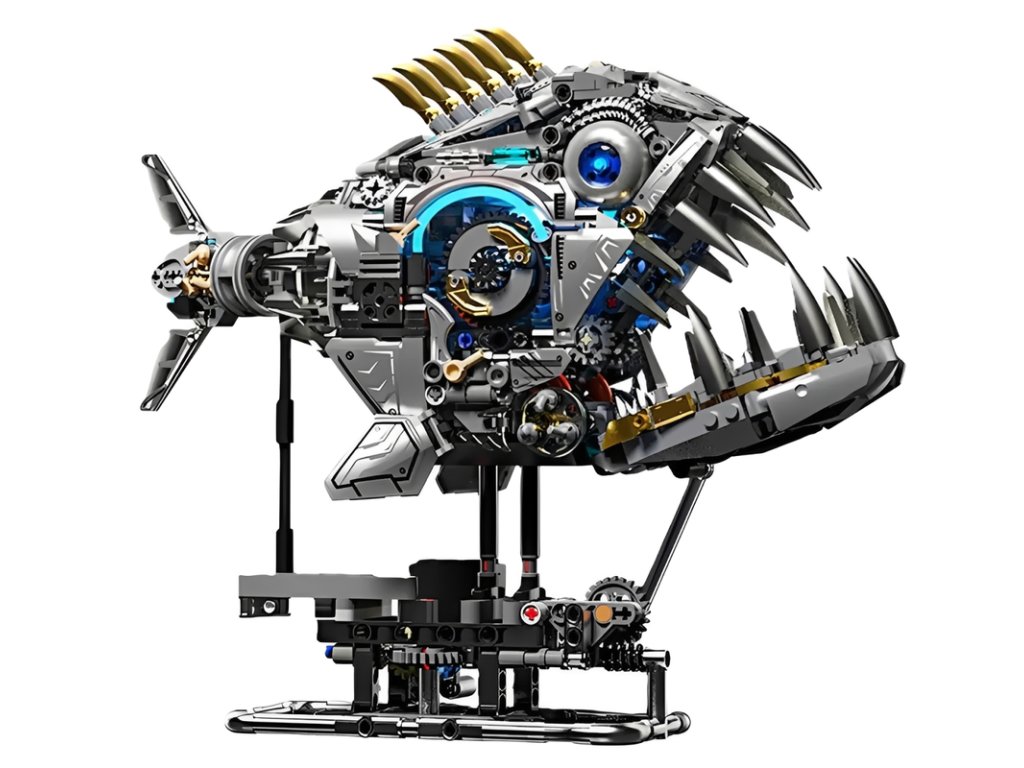 - Mechanická piraňa má kreativní design představující pověstné dravé ryby. Zároveň je konstruována jako technické monstrum.