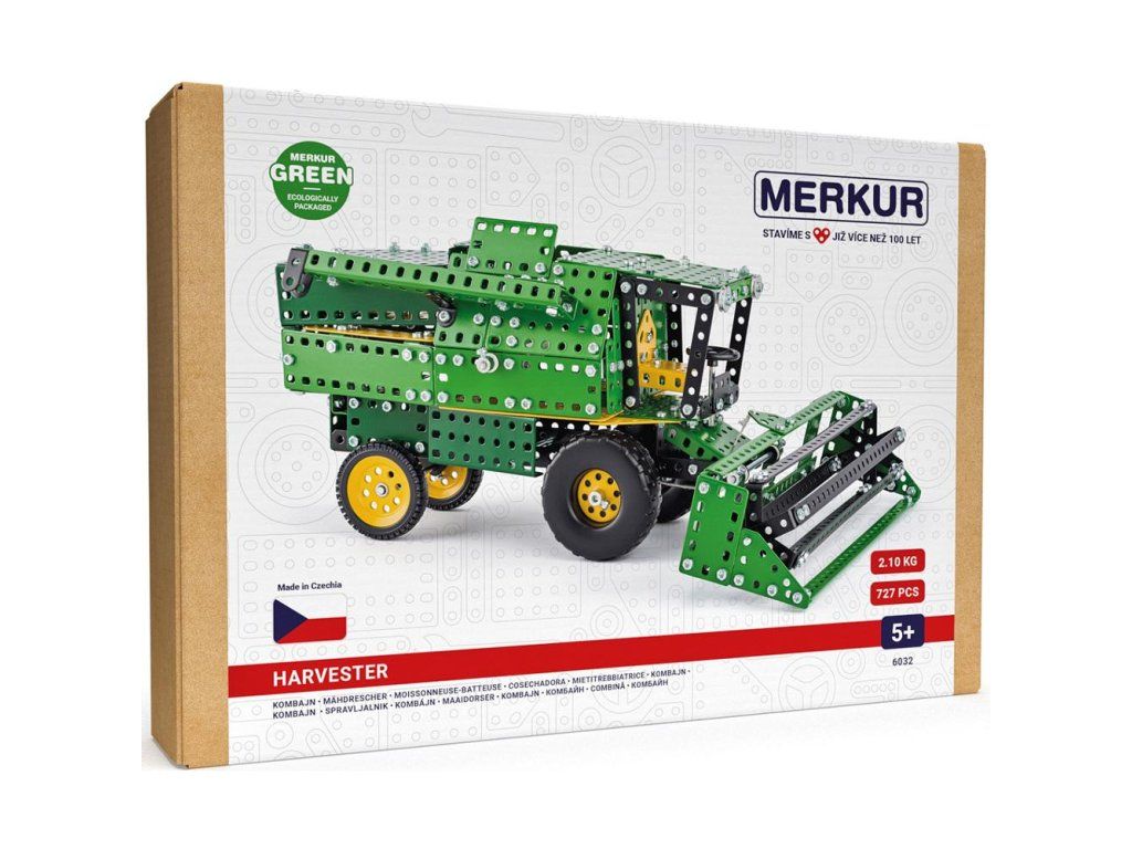 Z této stavebnice Merkur je možné dle návodu sestavit model kombajnu