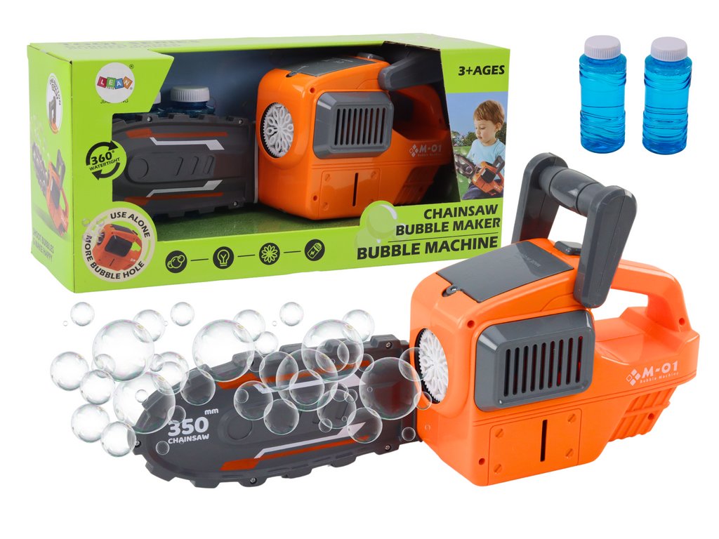 Oranžový design připomíná pilu z děsivého filmu, ale místo strachu přináší salvy smíchu a kouzelnou atmosféru jako z pohádkového strašidelného světa. Ideální dárek pro malé fanoušky strašidel, monster a bublin! 🎃🎁