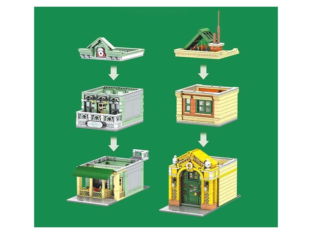 - Součástí stavebnice je i cukrárna. Najdete v ní prodejní pult na chlazené dortíky a regál s pečivem.