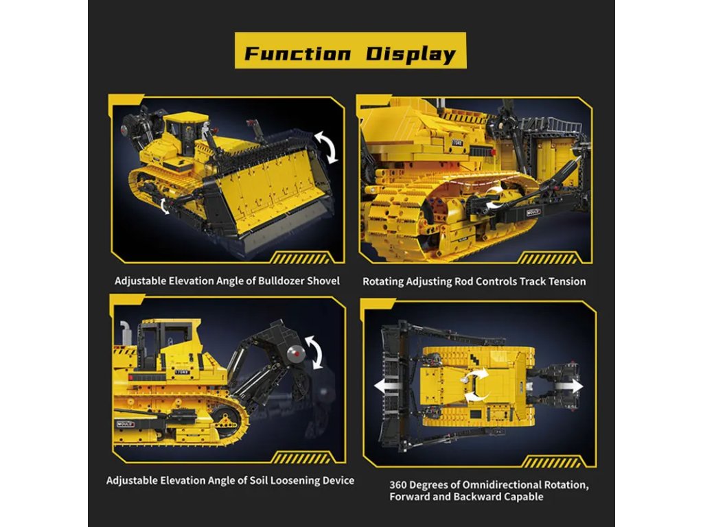 - Mechanické funkce buldozeru pohání 3x motor HM + 1x motor HL + 2x motor L a x smart box s vestavěnou nabíjecí baterií BH 6.0.