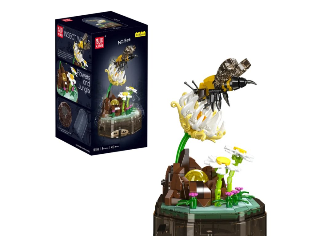 Stavebnici sestavíte z 413 dílků. Včela je umístěna nad rozkvétající bílou a žlutou květinou, vše je umístěno na otočném podstavci s LED podsvícením. Podstavec hraje hudbu. Výsledný rozměr stavebnice je 23,6 cm na výšku a 13,6 cm na šířku.