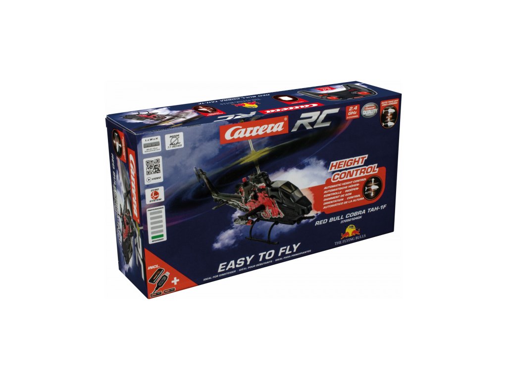 Stylový a výkonný vrtulník s licencí Red Bull je ideální volbou pro všechny fanoušky letectví a RC modelů. Díky pokročilému stabilizačnímu systému je velmi dobře ovladatelný a vhodný i pro méně zkušené piloty. LED osvětlení zajišťuje perfektní orientaci ve vzduchu i za horších světelných podmínek.