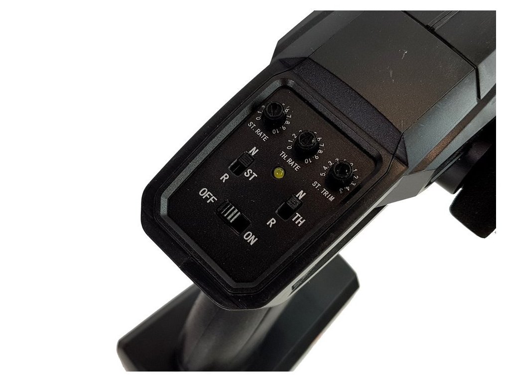 Díky pohonu všech kol (4×4), nezávislému odpružení a tlumičům nárazů zvládne nerovnosti, skoky i ostré zatáčky bez problémů. Ergonomický ovladač 2.4GHz nabízí přesné řízení plynu i rychlosti, a umožňuje závodit s více vozy najednou bez rušení signálu 📡.